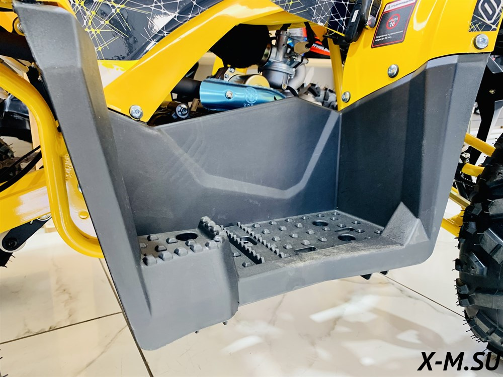 Квадроцикл также оборудован удобным и мягким сиденьем, которое обеспечивает комфорт во время поездок. Он также имеет удобные рукоятки для управления и простые в использовании педали для ускорения и торможения.