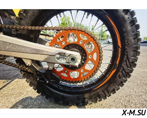 Пластик используется KTM2020 – очень прочный и распространенный, что делает его максимально возможным к обслуживанию. Руль IGP TwinWall 22/28 алюминиевый на всех моделях! Силиконовые грипсы Nibbi Racing – левая на замке, правая на короткоходной ручке газа Nibbi. Рычаги тормоза/сцепления – неломайки, из фрезерованного алюминия от CNC. Влагозащищенные кнопки старт/стоп на руле. Складной рычаг переключения передач, фрезерованный, из алюминия, от бренда PRO CAKEN. Лапка тормоза так же фрезерованная, алюминиевая. Самая легкая и прочная приводная цепь RK520MXZ уже установлена!