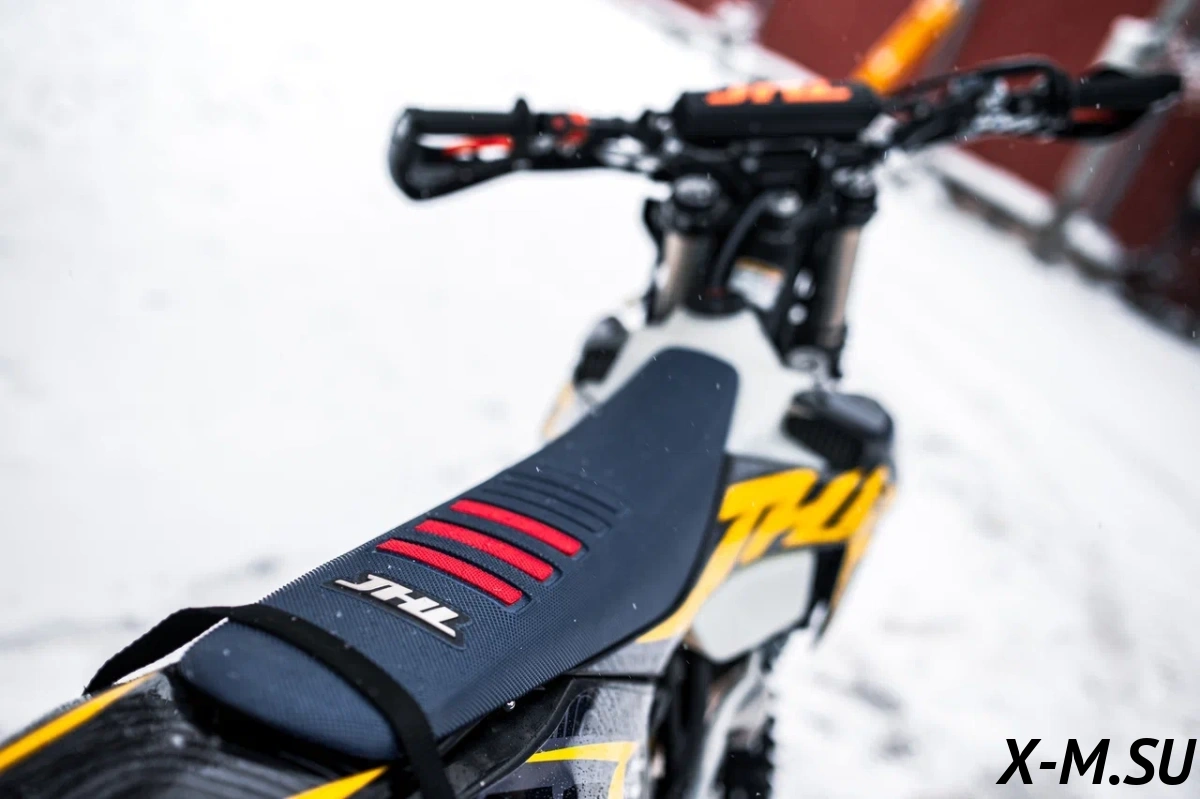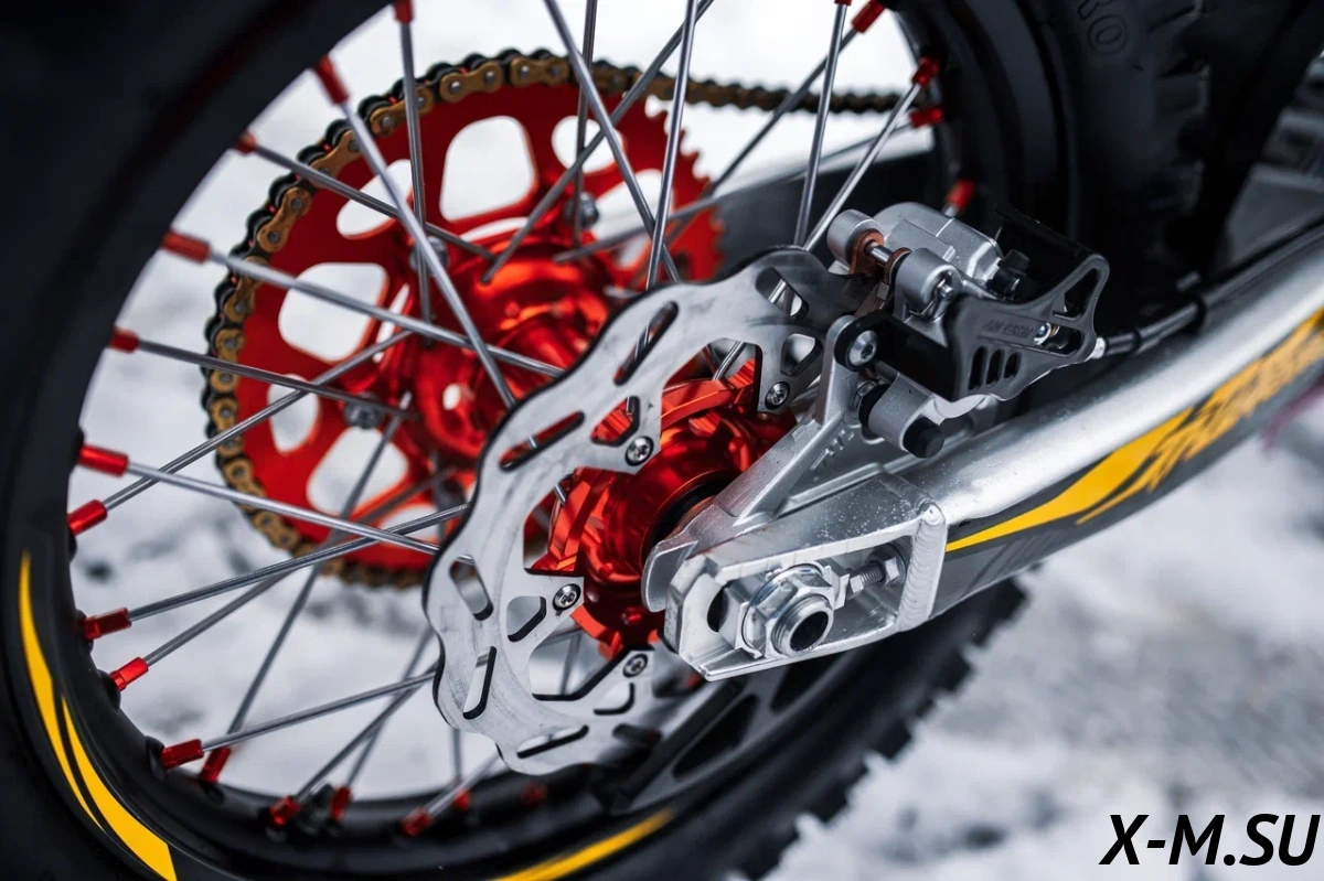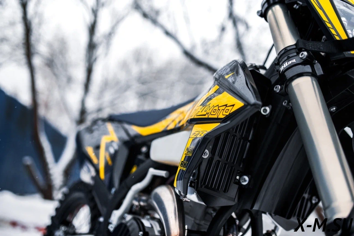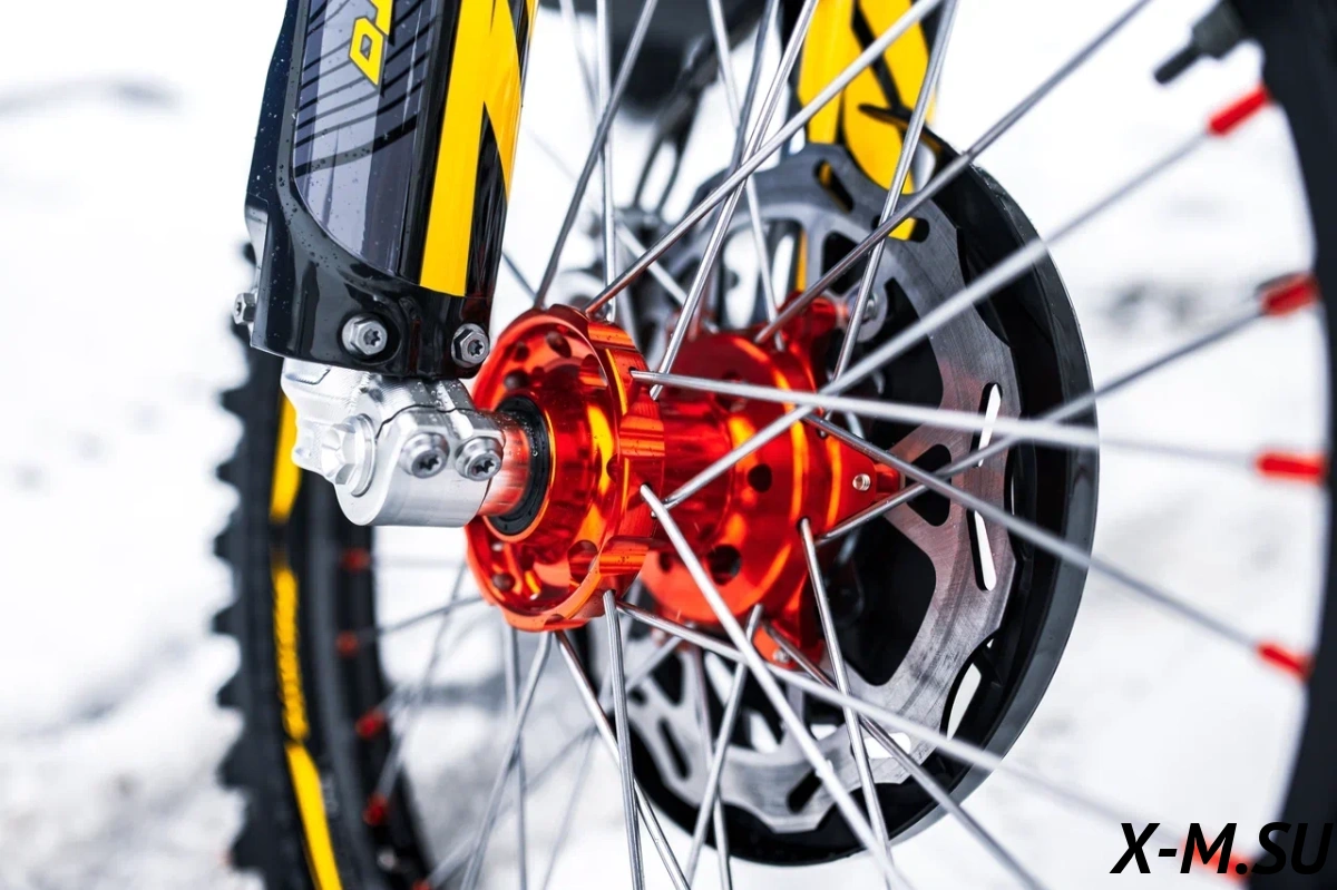 Пластик используется KTM2020 – очень прочный и распространенный, что делает его максимально возможным к обслуживанию. Руль IGP TwinWall 22/28 алюминиевый на всех моделях! Силиконовые грипсы Nibbi Racing – левая на замке, правая на короткоходной ручке газа Nibbi. Рычаги тормоза/сцепления – неломайки, из фрезерованного алюминия от CNC. Влагозащищенные кнопки старт/стоп на руле. Складной рычаг переключения передач, фрезерованный, из алюминия, от бренда PRO CAKEN. Лапка тормоза так же фрезерованная, алюминиевая. Самая легкая и прочная приводная цепь RK520MXZ уже установлена!