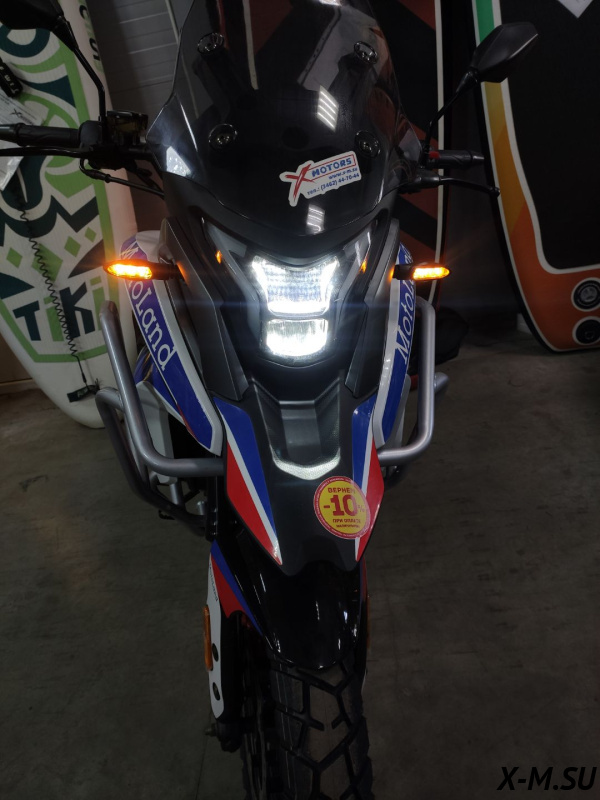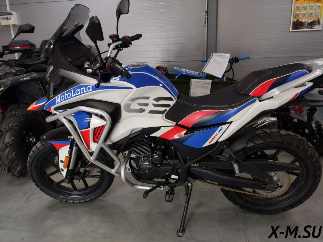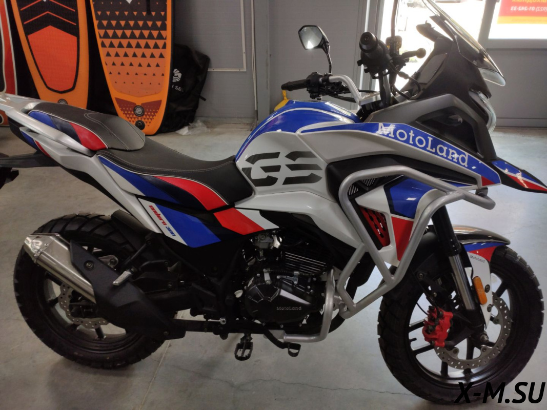 Мотоцикл Motoland GS ENDURO характеризуется своим ярким и узнаваемым дизайном, прочной рамой из Cro-mo труб, обладающей высокими прочностными характеристиками, а также современной подвеской с выносными регулировками компрессии и отскока. Он оснащен ободами из алюминиевого сплава, наличием электростартера, прямоточным выхлопом и LED оптикой с возможностью переключения между ближним и дальним светом.