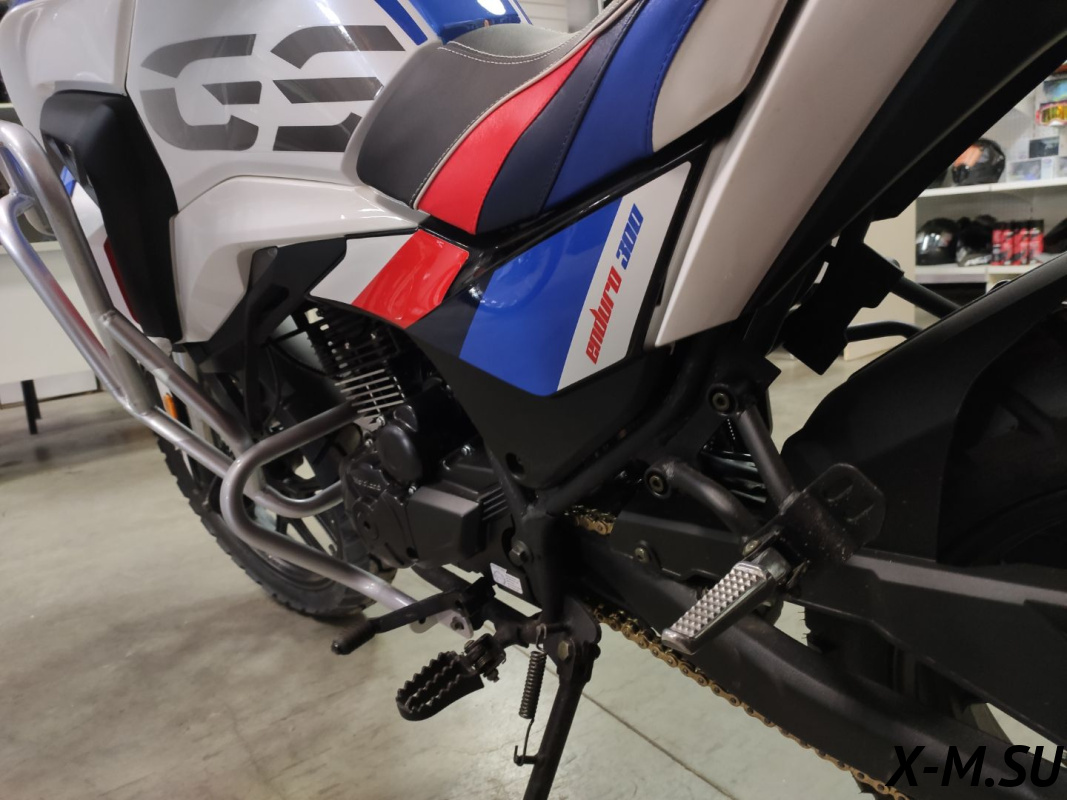 Защита картера двигателя и стальные звезды увеличивают надежность и срок службы мотоцикла. Багажник на заднем крыле и подножки для пассажира позволяют удобно перевозить груз и предоставляют дополнительные возможности для пассажира.