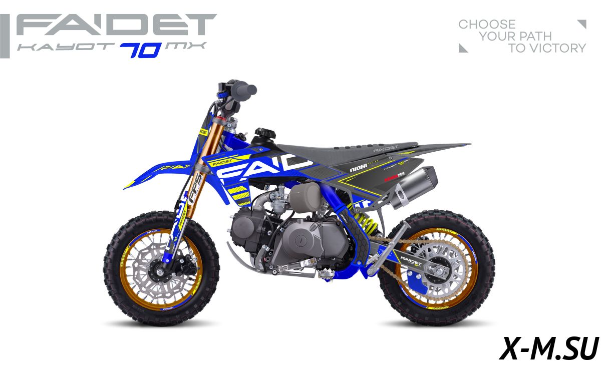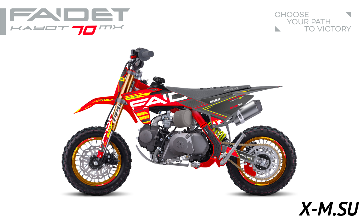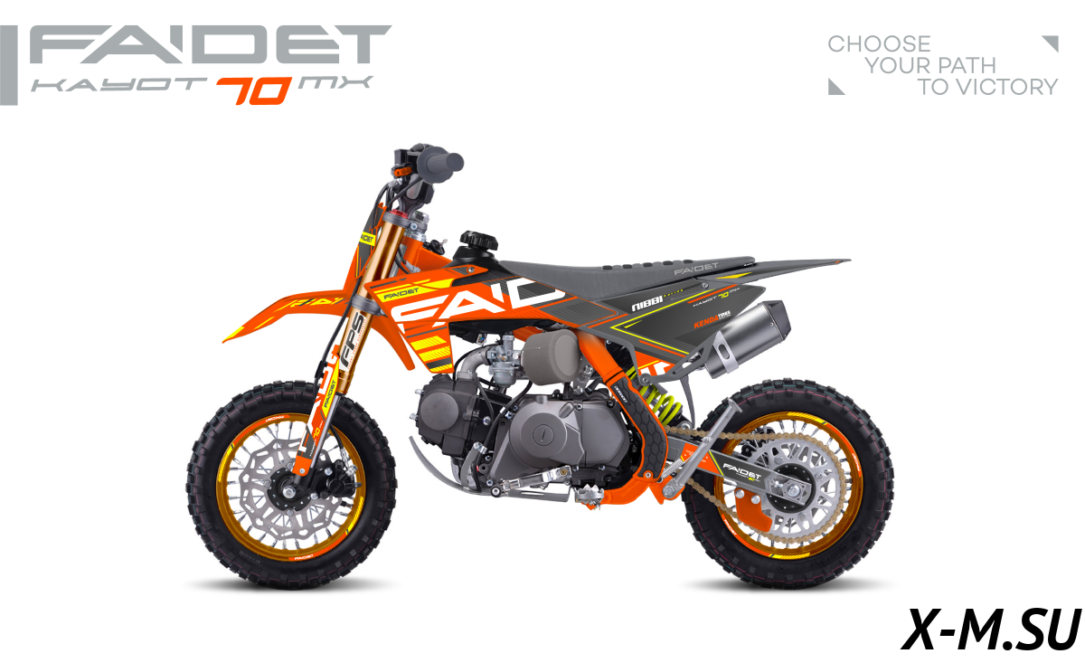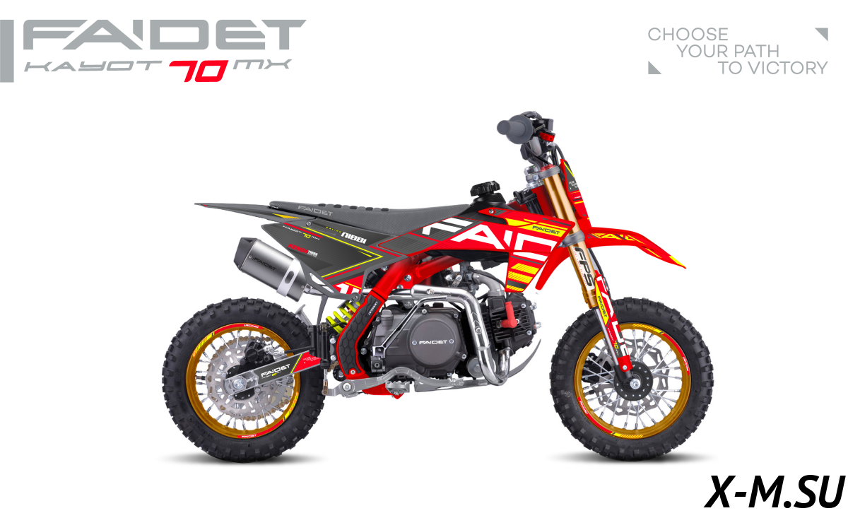 Купил FAIDET KAYOT 70 сынуле на др. Пацану 10 лет, сам ездит, без проблем. Мотор резвый, подвеска отличная, по бездорожью прёт как танк! Тормоза отличные, ребёнок уже на трассе гоняет. Качество на высоте, всё прочное, надёжное. Рекомендую всем родителям таких же шустриков! Заказал доп. защиту, чтобы совсем спокойно было.