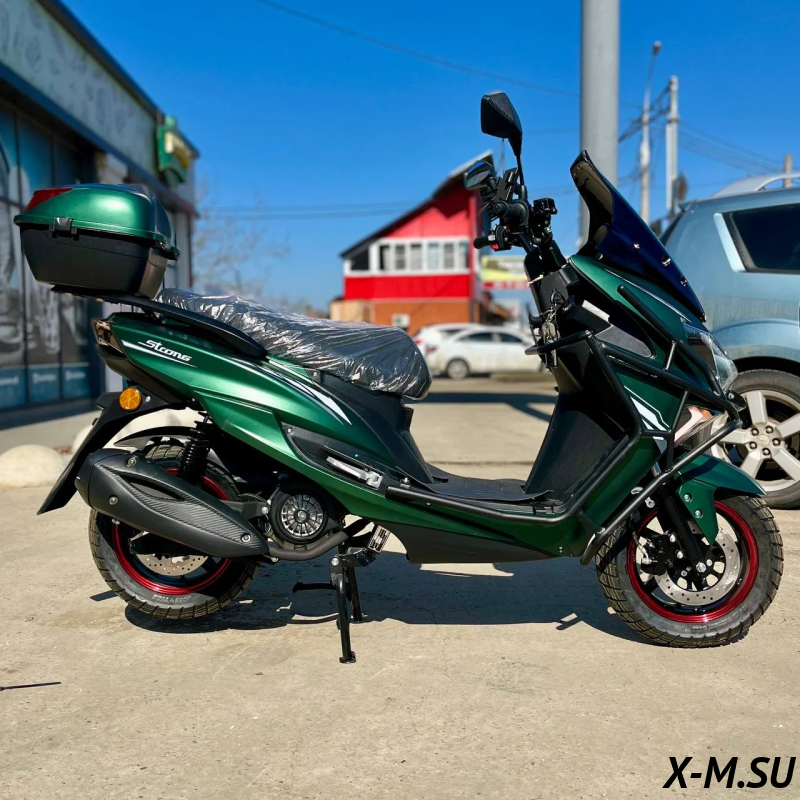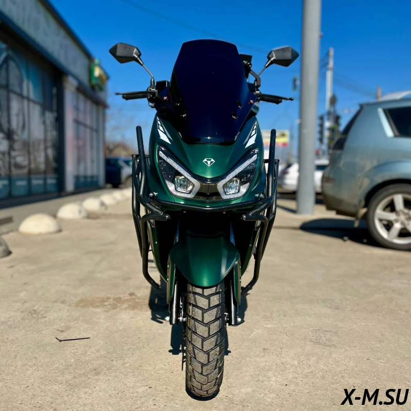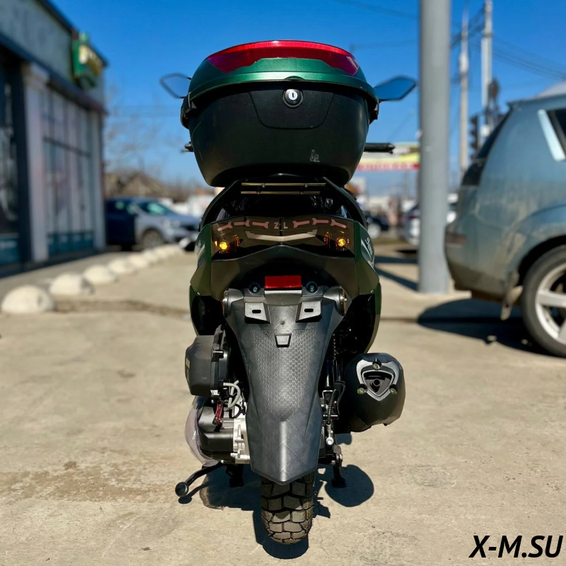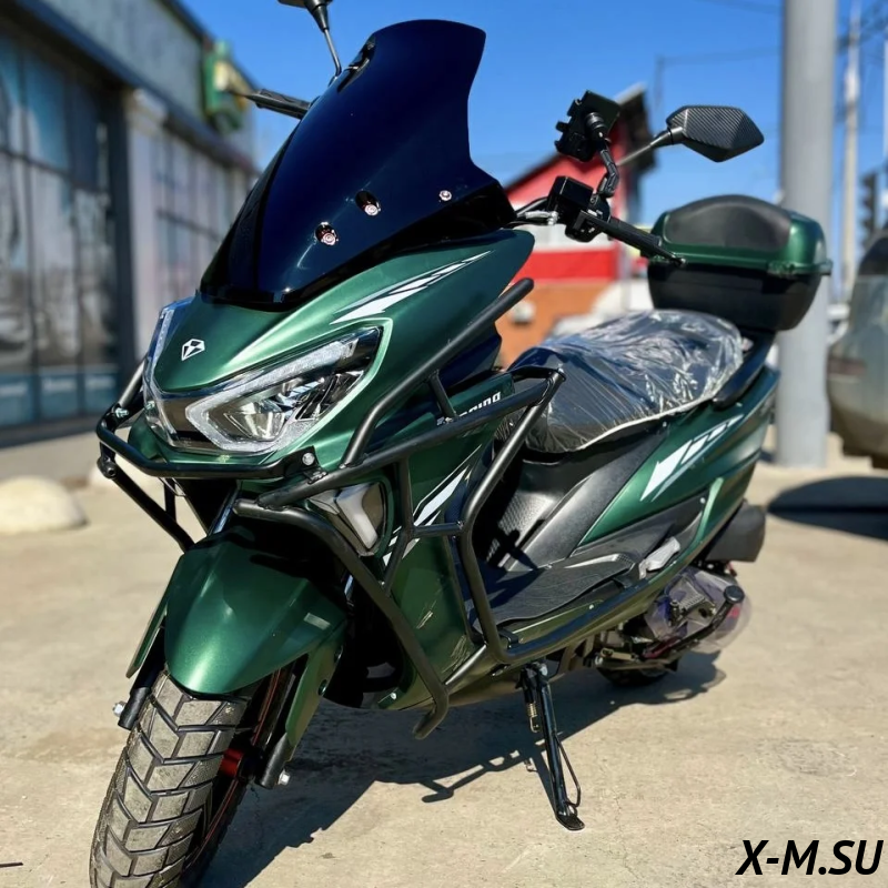 Комплектация -ЛЭД оптика - Кофр - Электронная панель приборов - Держатель для телефона - Набор ключей - Сигнализация с автозапуском -Дисковые тормоза (перед/зад) -Шлем в подарок |