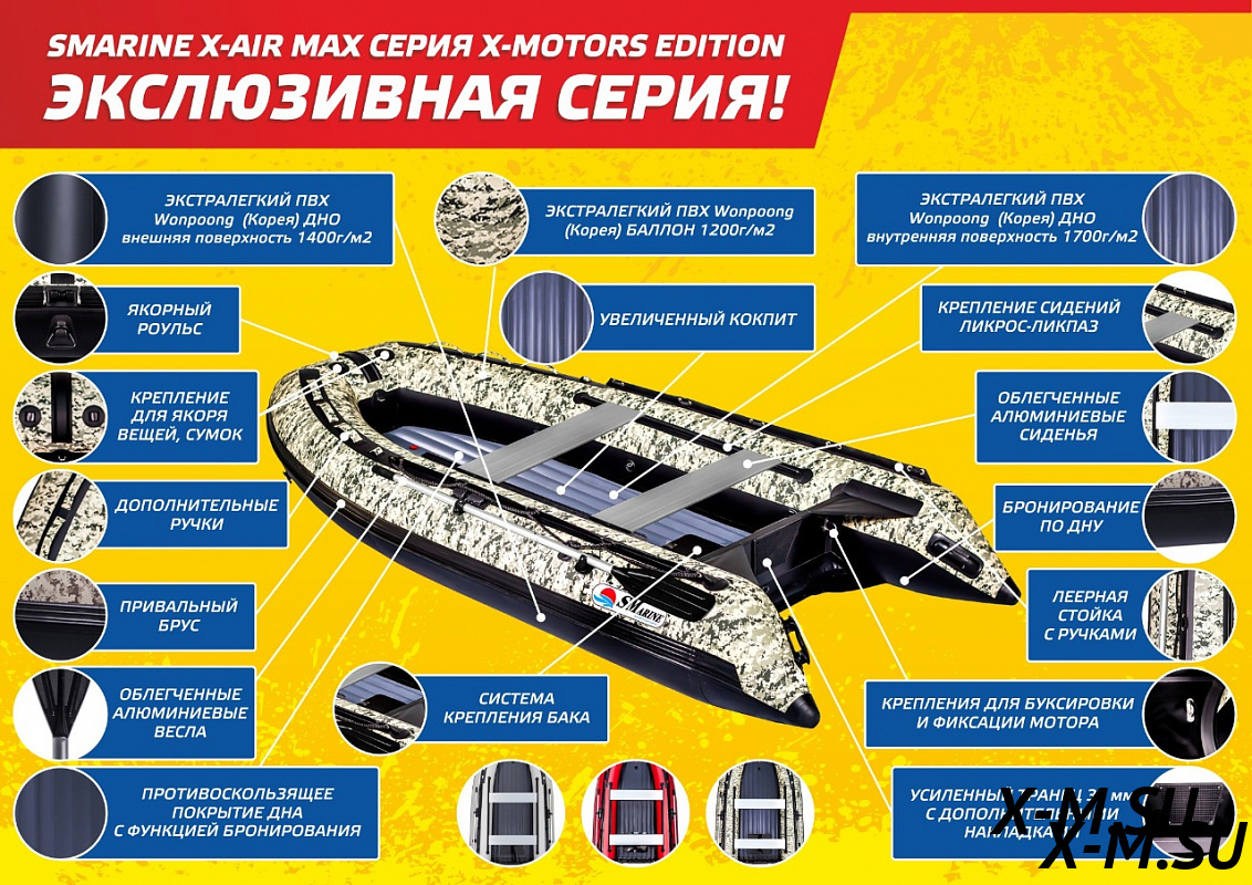 Цена на товар Лодка Smarine X-AIR MAX 340(X-MOTORS EDITION) не является итоговой и может измениться в зависимости от валютных курсов, общей экономической ситуации или логистических и иных факторов.