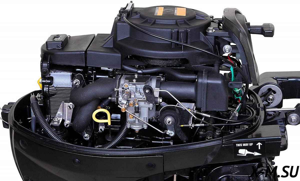MF 15 AWHS: Лодочный мотор Marlin Outboards, четырехтактный, 15 лошадиных сил, комбинированный (ручной запуск + электрический запуск) запуск двигателя, румпельное управление, короткая нога (дейдвуд).