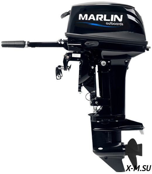 MF 15 AWHS: Лодочный мотор Marlin Outboards, четырехтактный, 15 лошадиных сил, комбинированный (ручной запуск + электрический запуск) запуск двигателя, румпельное управление, короткая нога (дейдвуд).