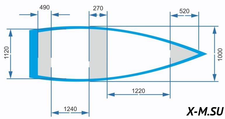 Масса лодки с оборудованием и снабжением (без мотора) - 60 кг.