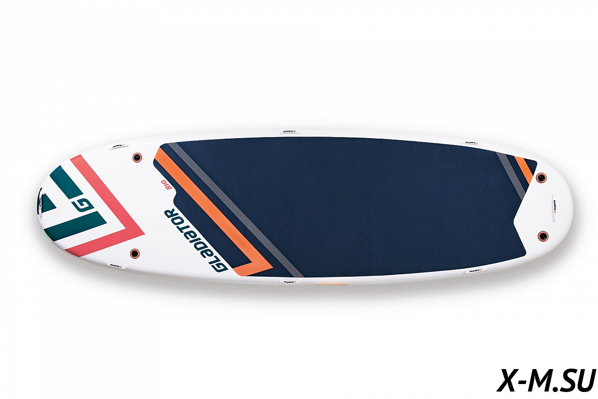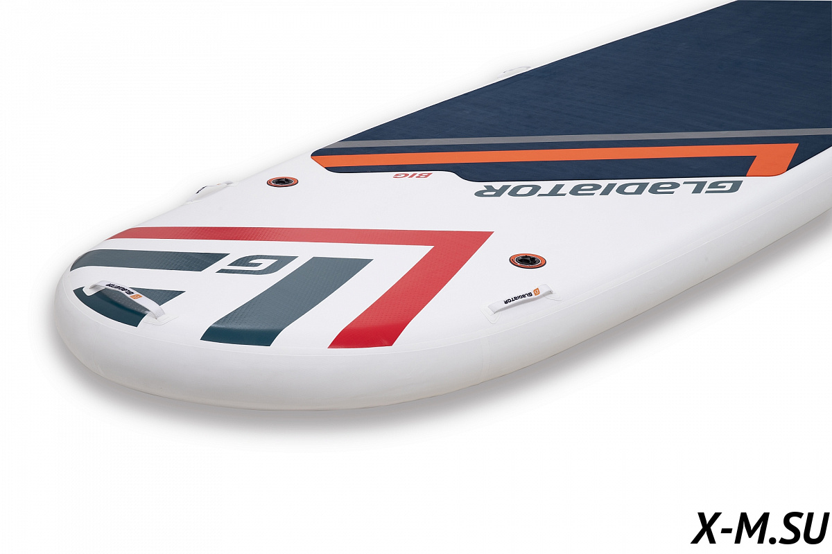 Размеры доски впечатляют — в длину она 518 сантиметров, в ширину — 152 см. Это одна из самых больших надувных досок на рынке сапбордов. На верхней части у Гладиатор BIG Sup 17.0 есть специальная прорезиненная подложка, благодаря которой райдер не будет соскальзывать с доски во время купания. Для того, чтобы накачать доску, в неё встроено целых 4 клапана для насосов. Внутреннее давление доски — 26 psi — это очень хороший показатель, который обеспечит достаточную жёсткость.