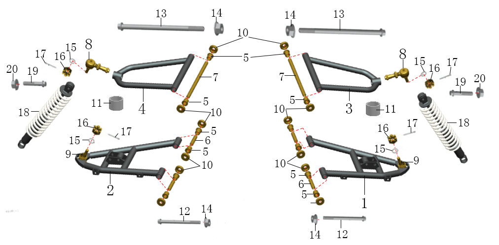 Передняя подвеска в сборе КВАДРОЦИКЛА GBM STORMRIDER 200/320