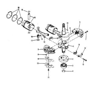 Коленчатый вал, поршни и шатуны 2-х тактного ПЛМ MERCURY 40 M Серийный номер от 8064750 и выше