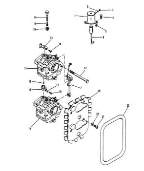 Карбюратор и дроссель 2-Х ТАКТНОГО ПЛМ MERCURY 60 Серийный номер от 7208333 до 0A721307