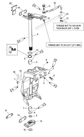 Поворотный кронштейн и рулевой рычаг 2-Х ТАКТНОГО ПЛМ MERCURY 90 Серийный номер от 0P017000 до 0P325499