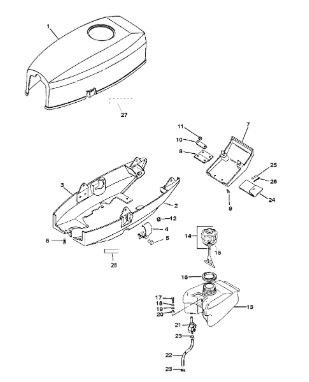 Капот и топливный бак, 1B575522 и ранее 2-Х ТАКТНОГО ПЛМ MERCURY ME 2,5M Серийный номер от 0T894577 и выше
