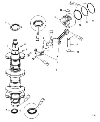 Коленвал, поршни и шатуны 4-Х ТАКТНОГО ПЛМ MERCURY 60 Серийный номер от 1C000001 до 1C050251