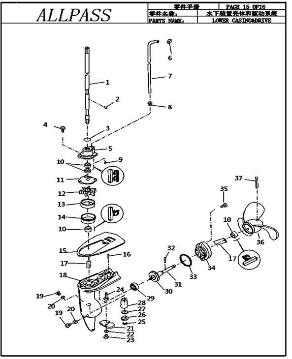 28 ALT2.5-07000005 Лодочный мотор Yamabisi - Т2-2.5 Вал гребного винта