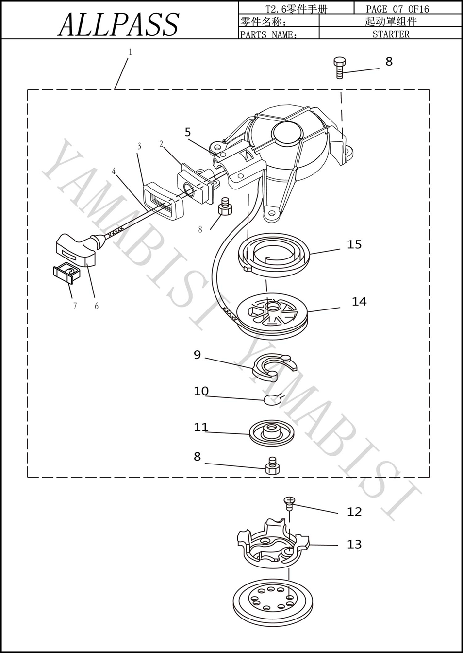Запчасти для 2-х тактного ПЛМ YAMABISI T2.6BMS