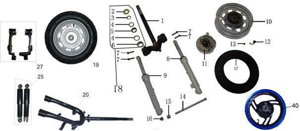MET1900 Передняя вилка (колесо штамповка)